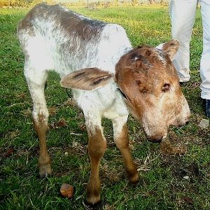 Uma bezerra de quatro dias chama atenção de moradores do município de Comodoro (600 km de Cuiabá). Ela nasceu na última sexta-feira (17) com duplicidade de cabeça, boca, focinho, narinas e olhos. Apesar dessa deformação, o animal passa bem, e a alimentação também é feita de dupla forma: a mãe, apelidada de "tubaína", faz a parte dela, mas é o agricultor Ronaldo Vieira de Paula quem complementa o leite com mamadeiras.