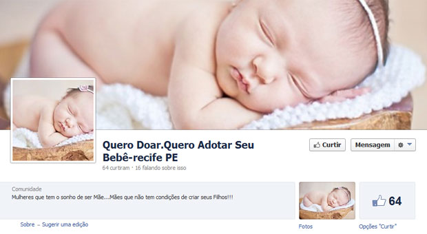 A Gerência de Polícia da Criança e do Adolescente (GPCA) está investigando um esquema de adoção ilegal e venda de crianças do Recife oferecidas no Facebook. Na página criada no início deste mês, mães negociam os filhos através de anúncios. Em um grupo criado com a mesma finalidade, uma pernambucana tentou vender um bebê por R$ 50 mil.A página "Quero doar. Quero adotar seu bebê - Recife PE" foi feita por um usuário do Facebook que reside no Recife. Na teoria, o espaço seria utilizado para facilitar o contato entre mães que gostariam de doar seus filhos e possíveis candidatos à adoção. Na rede social, é possível encontrar anúncios de mães que gostariam de se desfazer de seus filhos, descrevendo as crianças como se fossem objetos. As autoridades já enviaram um ofício para os administradores do Facebook solicitando a exclusão da página e pedindo informações sobre as pessoas que participaram das negociações. A página foi retirada do ar no início da tarde desta quarta-feira (31).